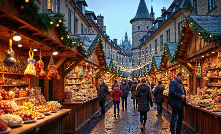 La piazza principale ospita un mercatino suggestivo, dove assaggiare waffle caldi, cioccolata belga e vin brulé. La pista di pattinaggio circondata da edifici storici rende il paesaggio ancora più magico.